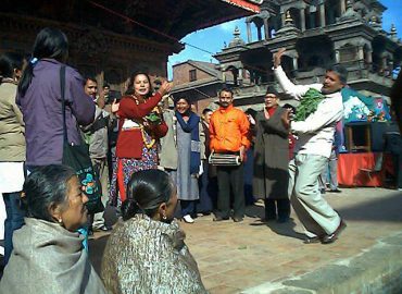 Singing and dancing as a part of disseminating information about Vitamin A Program.